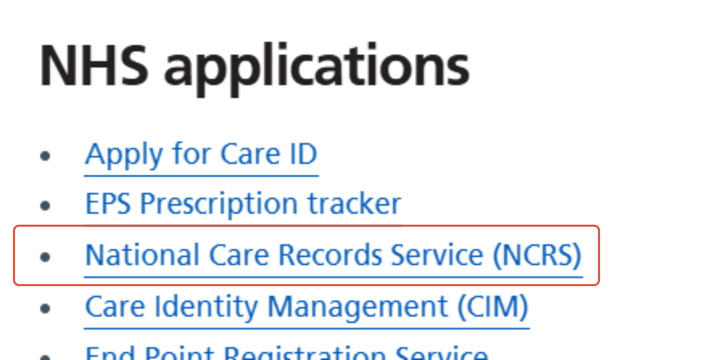 2. Click National Care Records Service