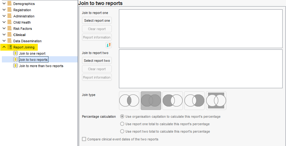 - If you join to published reports, you will benefit from any automatic updates from the publishing organisation during the lifecycle of that report - however, many centrally-published reports have a maximum lifecycle of one year. Others (such as for enhanced services) have dates that change at the national extraction intervals (monthly/quarterly etc).
