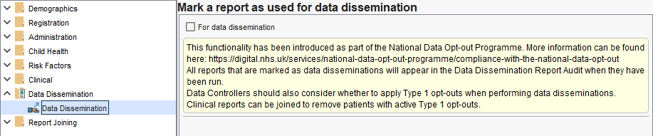 If you are building reports to disclose to other services or for research purposes etc, we recommend you discuss each case with your Data Protection Officer. One of the considerations of these discussions will be if the disclosure is in scope for National Data Opt-Out (NDO) - historically called 'Type 2' opt outs.